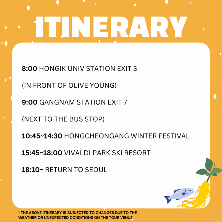 - The schedule and conditions of the tour might change depending on the situation on the date of the tour