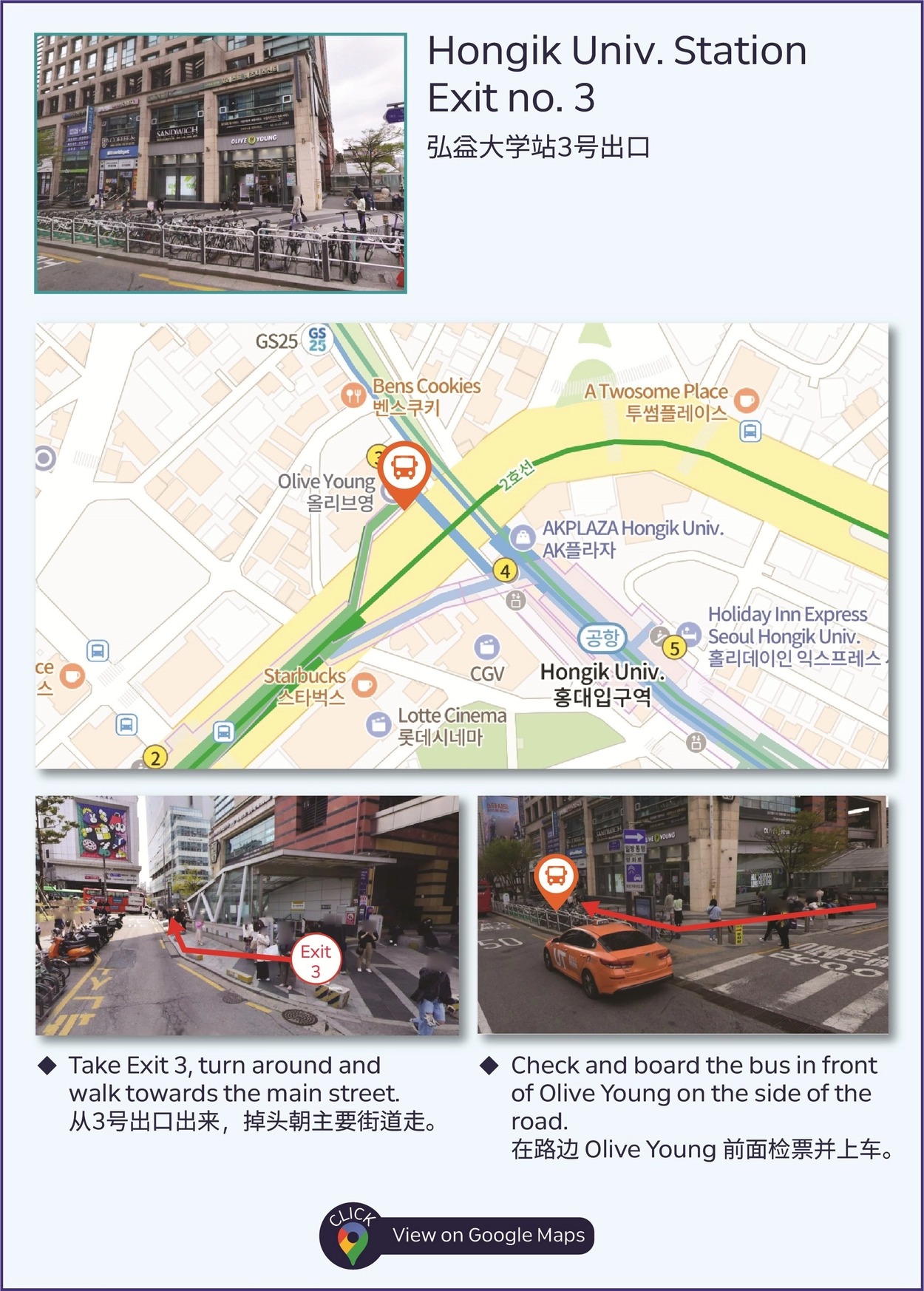 8:00AM Hongik exit. no. 3 (in front of Olive young)