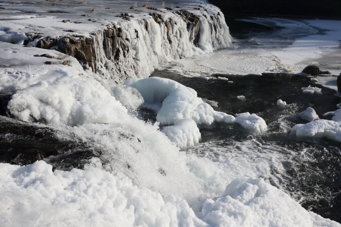 See the Hantan-river frozen and the valley composed of basalt, a form of rock.