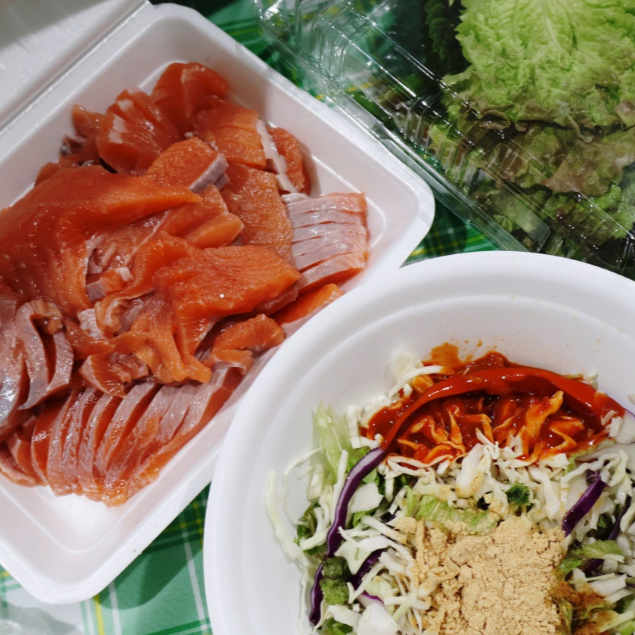 You can either take your fish home or enjoy it on the spot, raw or grilled,