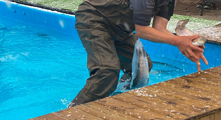 It might also be easier since the fish are in a pool,