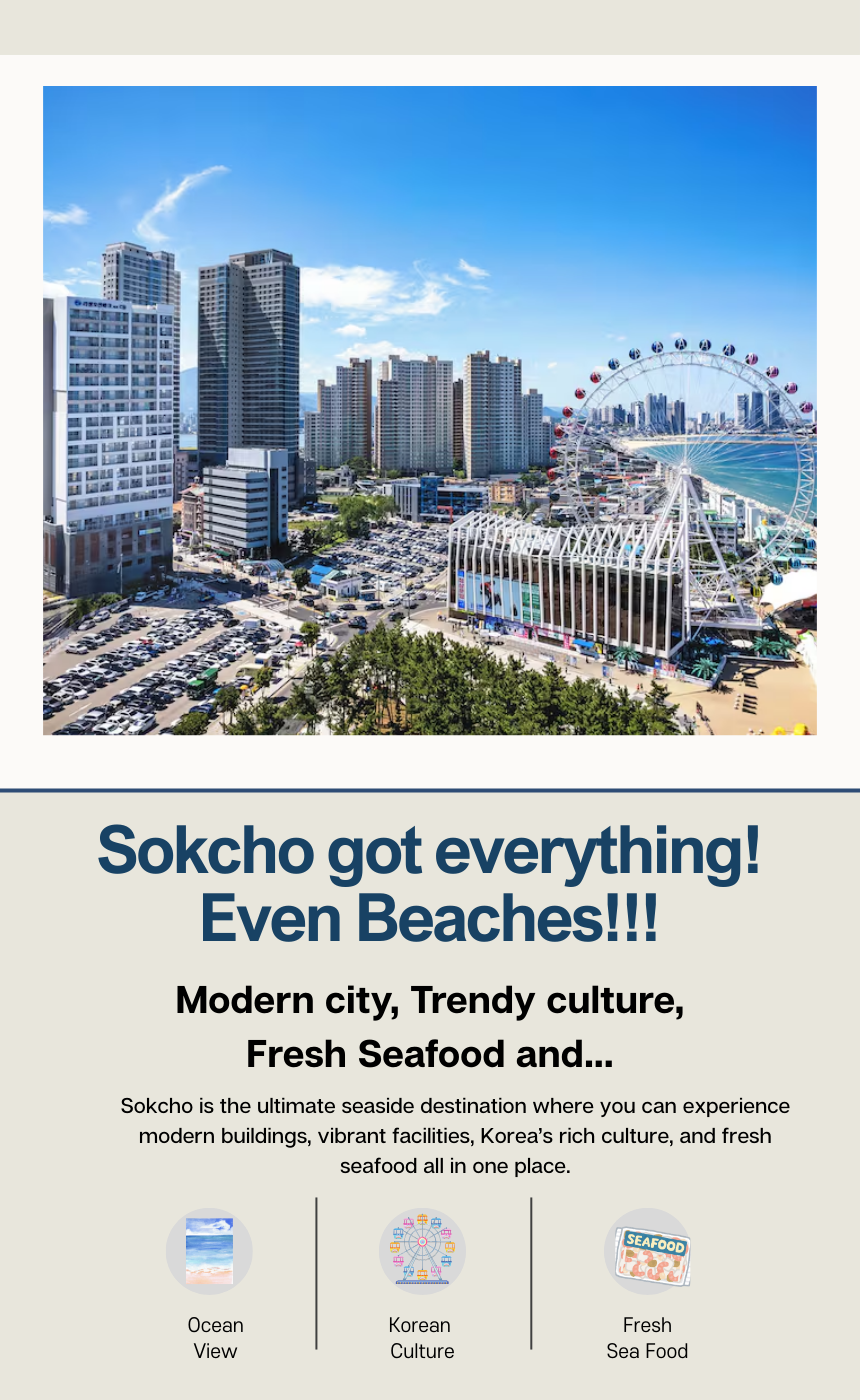Fully enjoy beautiful Sokcho with us!