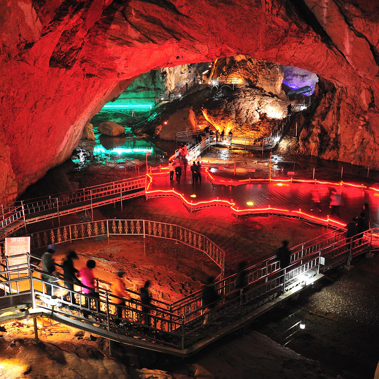 Inside the cave, various types of stone, stalagmites, and stone pillars are magnificently well developed.